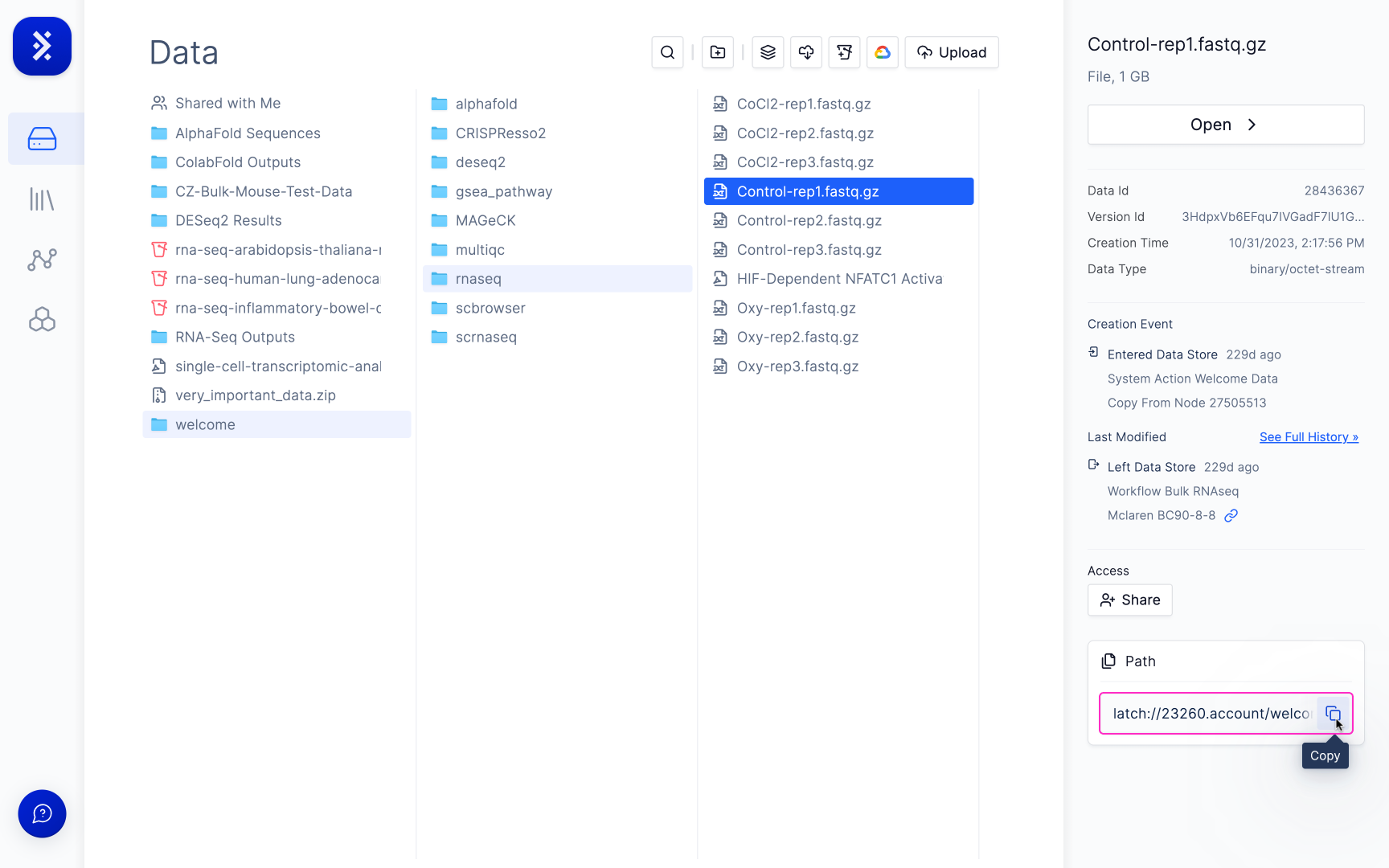 in workspace 456.You can find the remote path of the file you want to copy in the sidebar of the Latch Console
