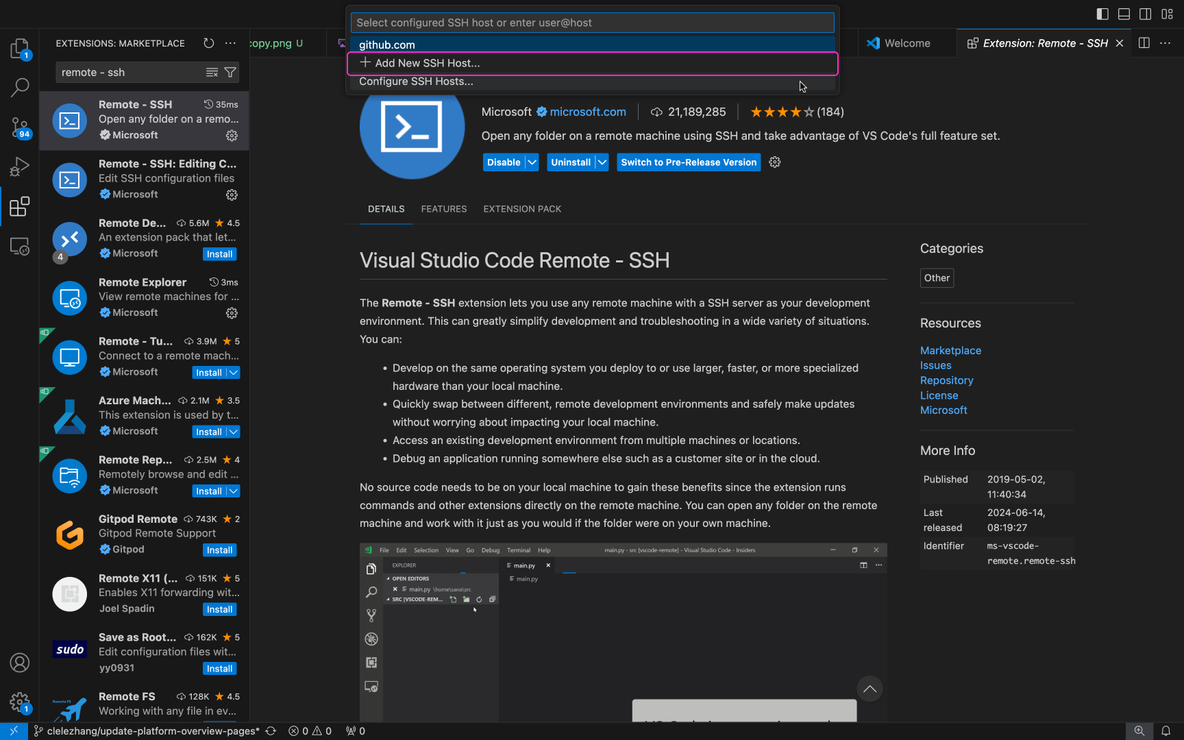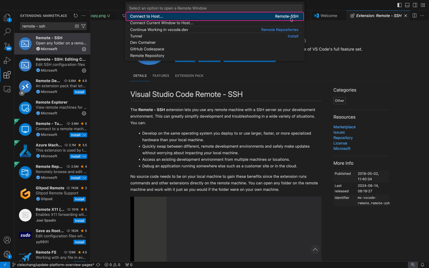 Click on the small green or blue remote icon at the bottom left of your VSCode Window.