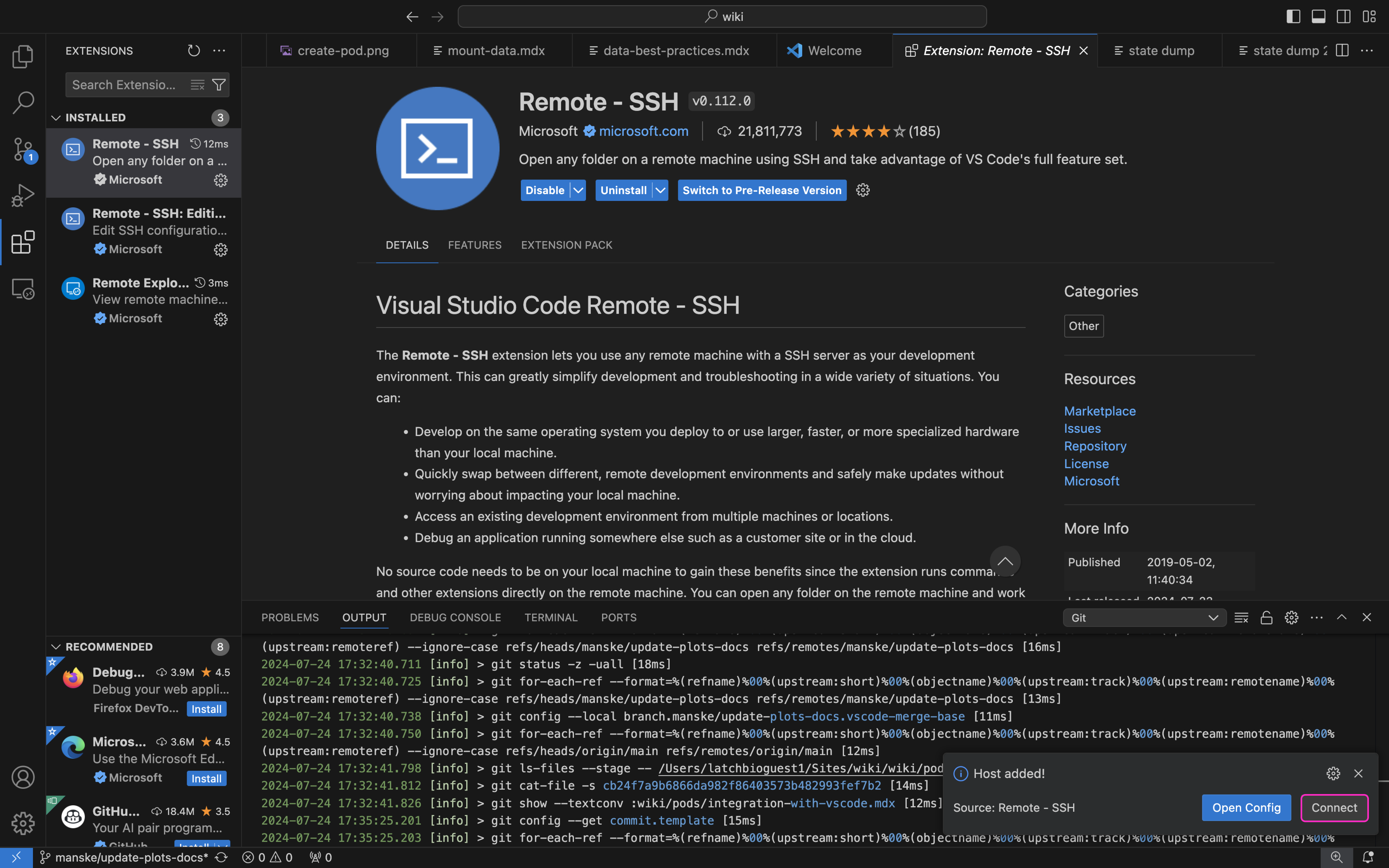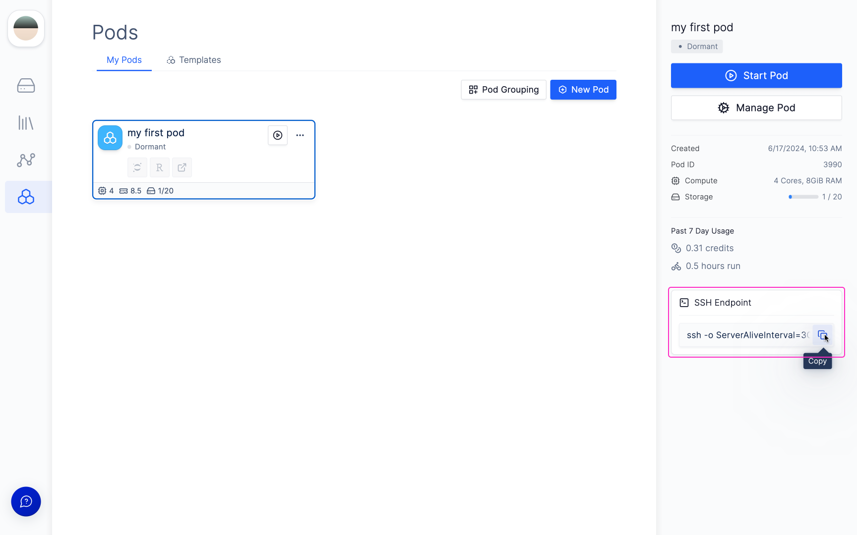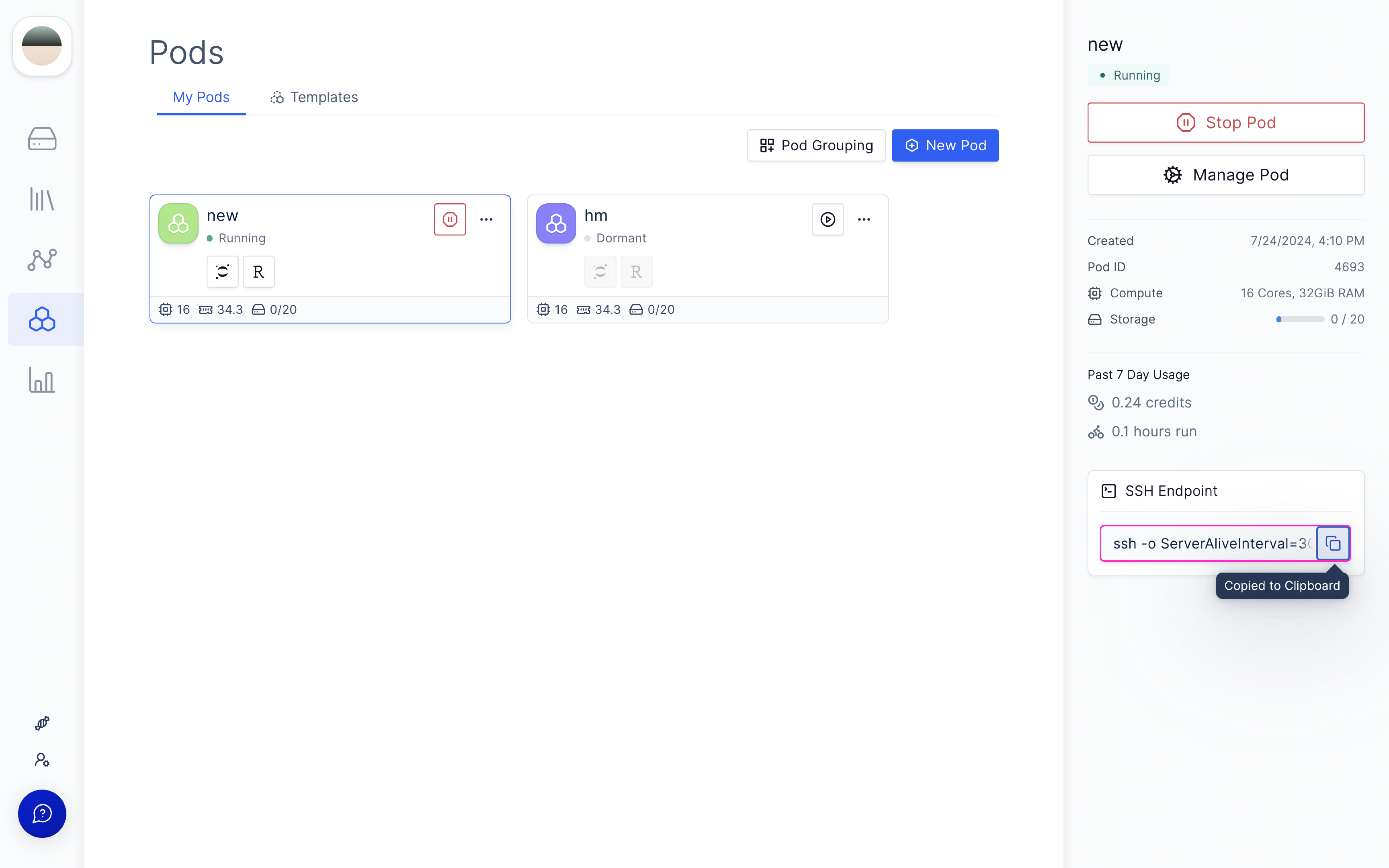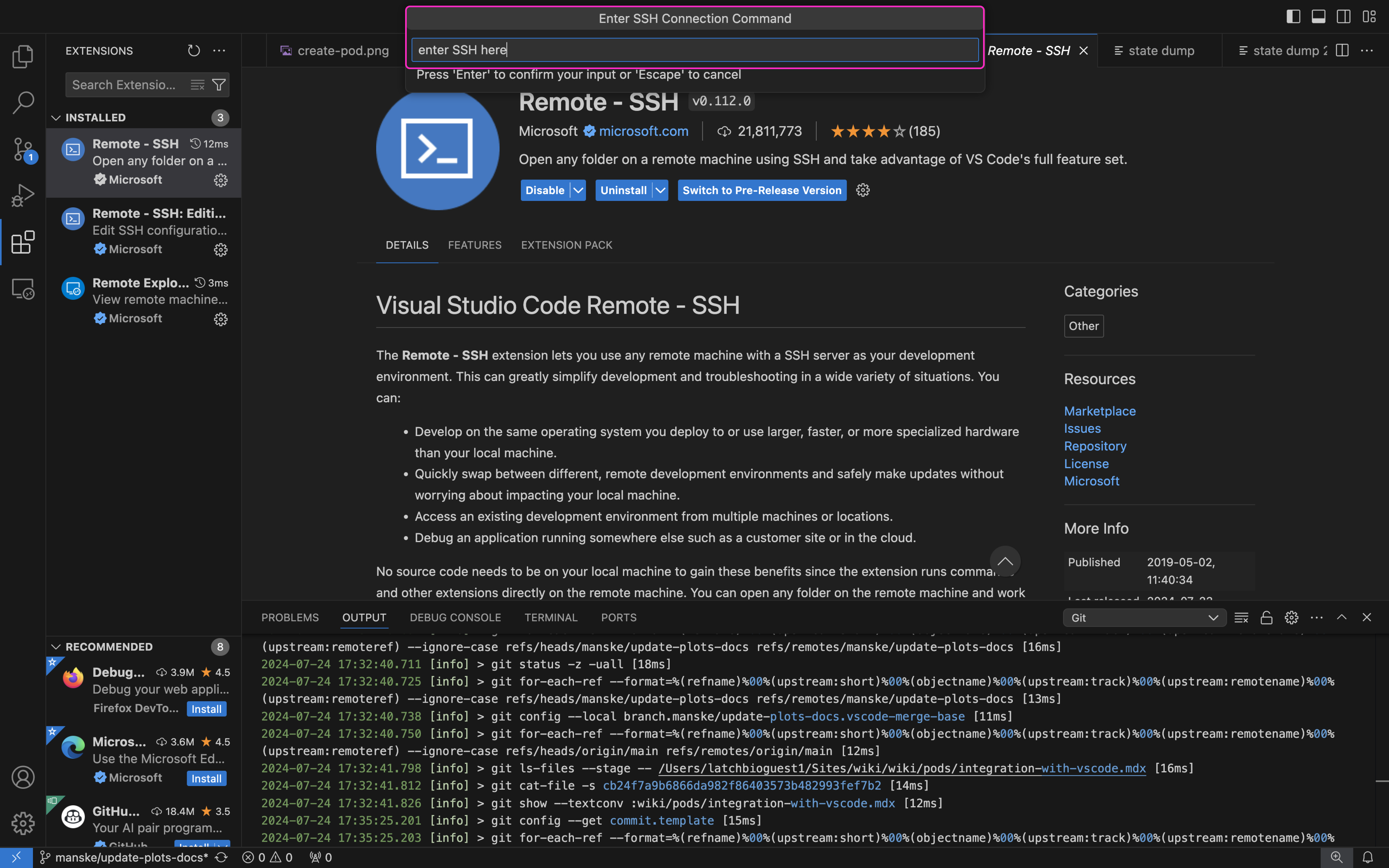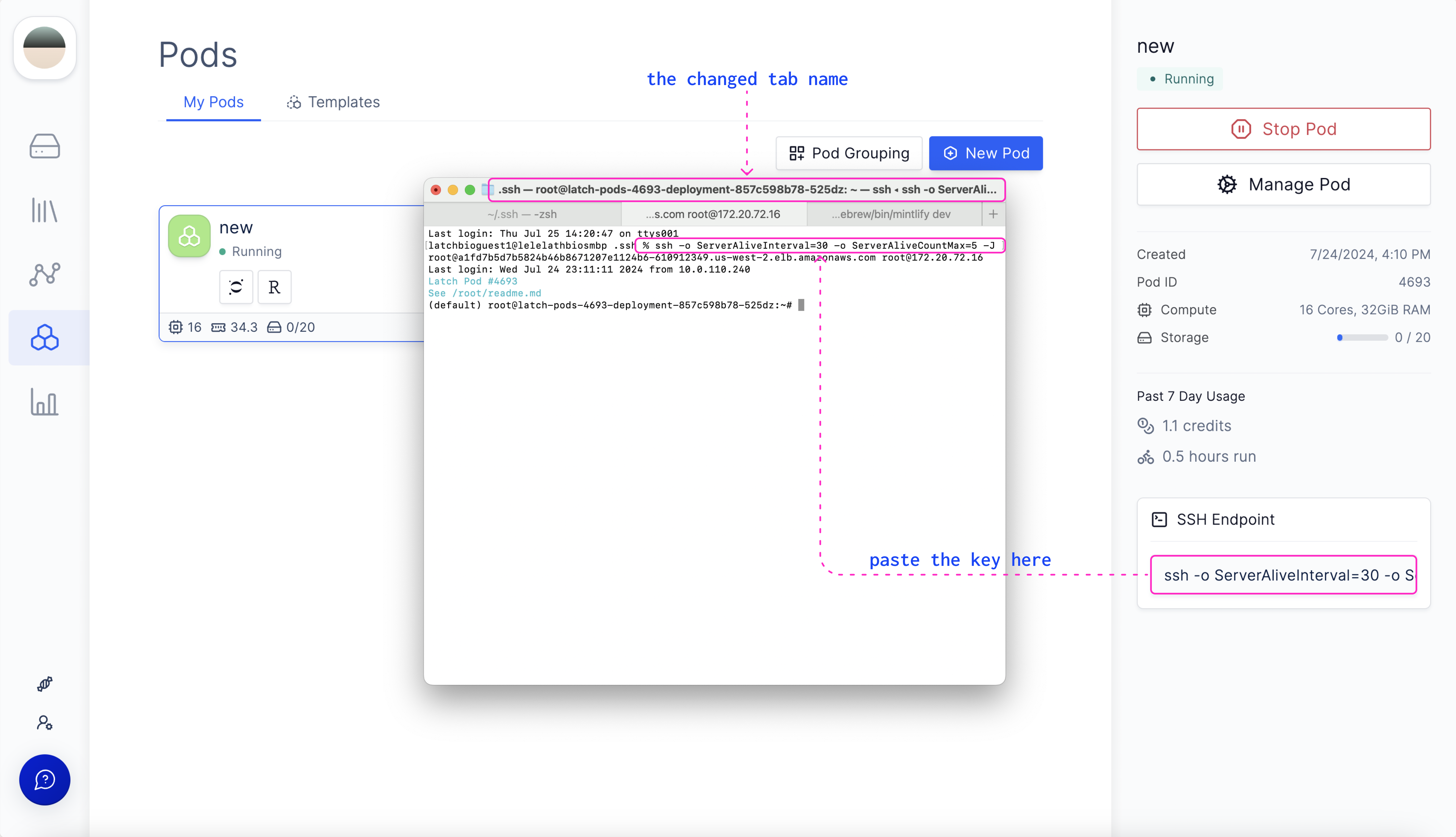 If your SSH was added successfully, the directory you are in will change to the pod.