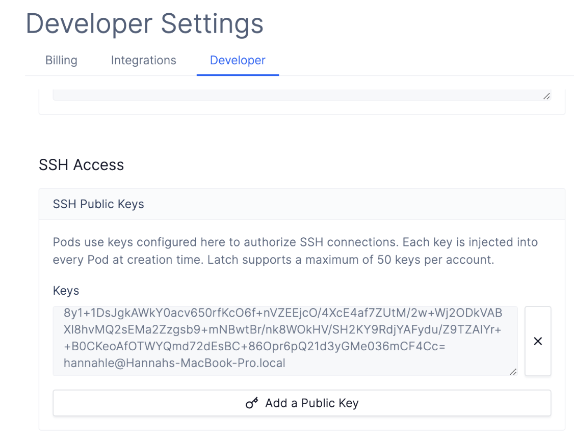 Latch only authorizes access to users whose public SSH keys are added here. If