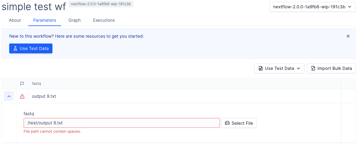 parameter is validated to ensure that the file path does not contain spaces. If the regex fails,